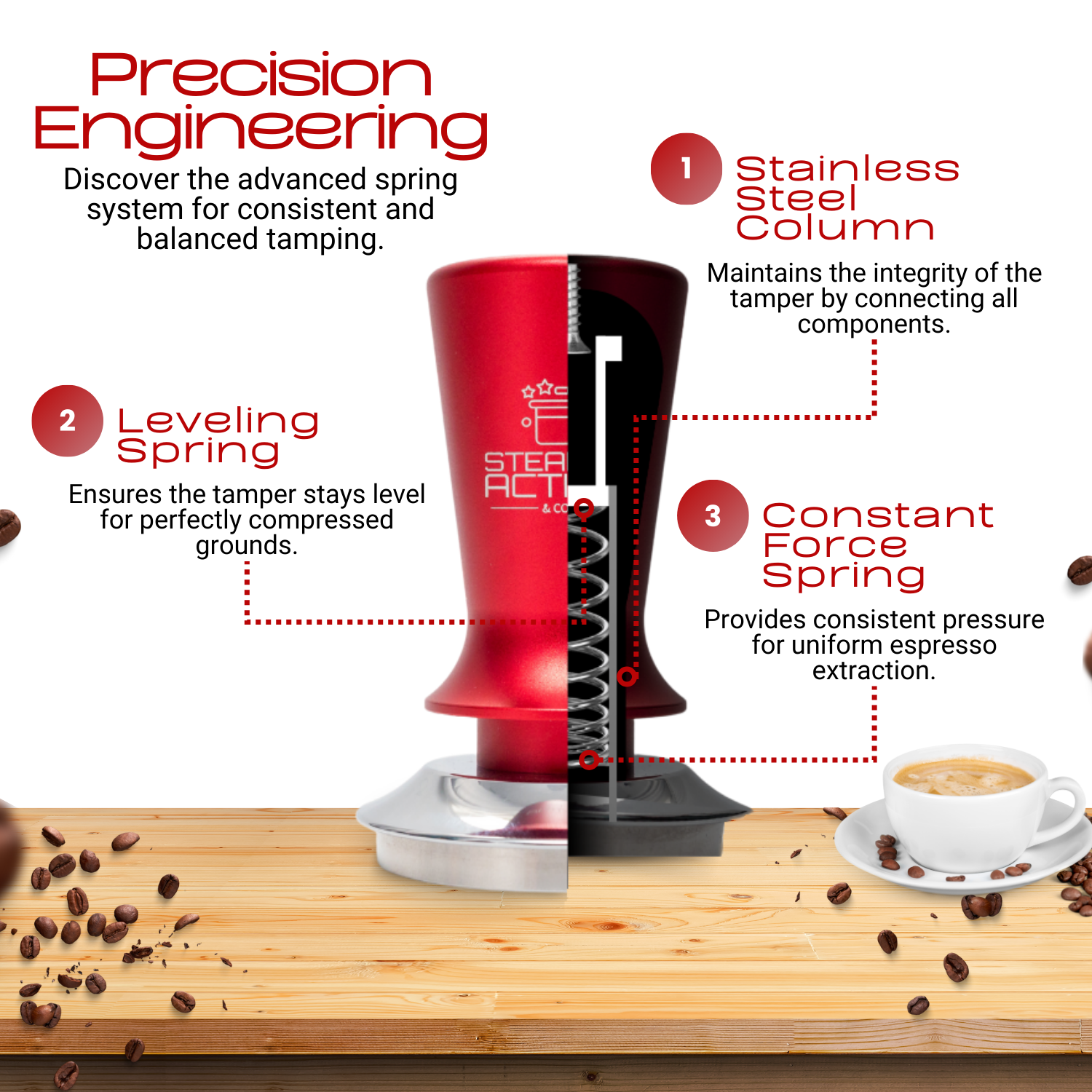 ensures consistent tamping pressure
